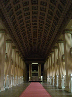 Next I went to Old College to see the Playfair Library. I've heard that it's known as the "most beautiful room in Edinburgh" so of course I had to see it. I went in to Old College and had to get a visitor badge and stuff, then I went up to the library. Wow. Stunning. What a beautiful room! It looks like a smaller version of the long library at Trinity College Dublin. I was the only person in there so it was silent, just me in this enormous, gorgeous room. Here are a few pictures: